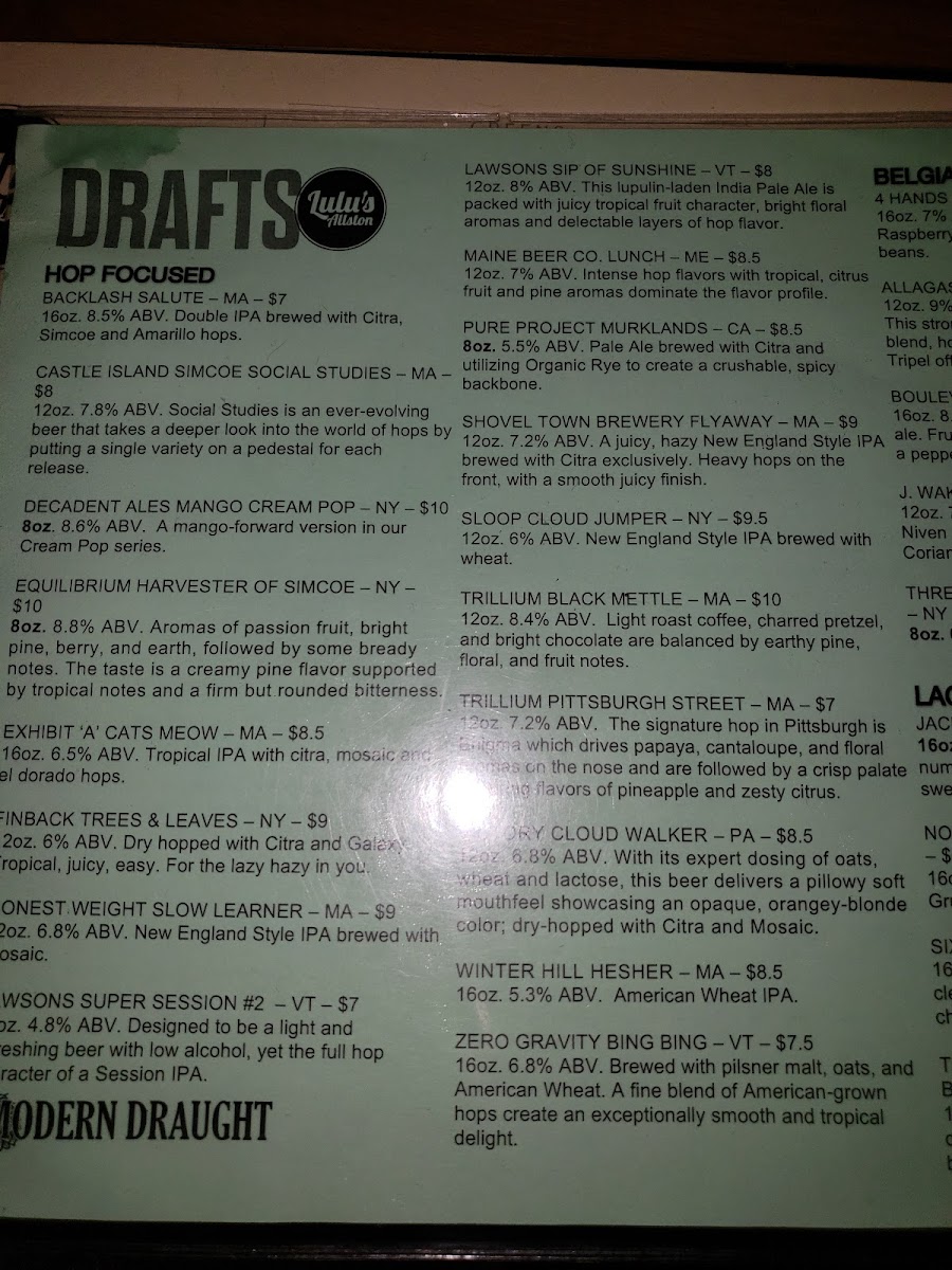 The outdoor seating option allows you to enjoy your meal while soaking up the Allston ambiance on nice days. Patrons have praised the impressive beer selection, which perfectly complements the flavorful dishes. Whether you’re looking to unwind with friends over pints or enjoying a hearty meal with family, Lulu's provides a welcoming environment that's hard to beat.